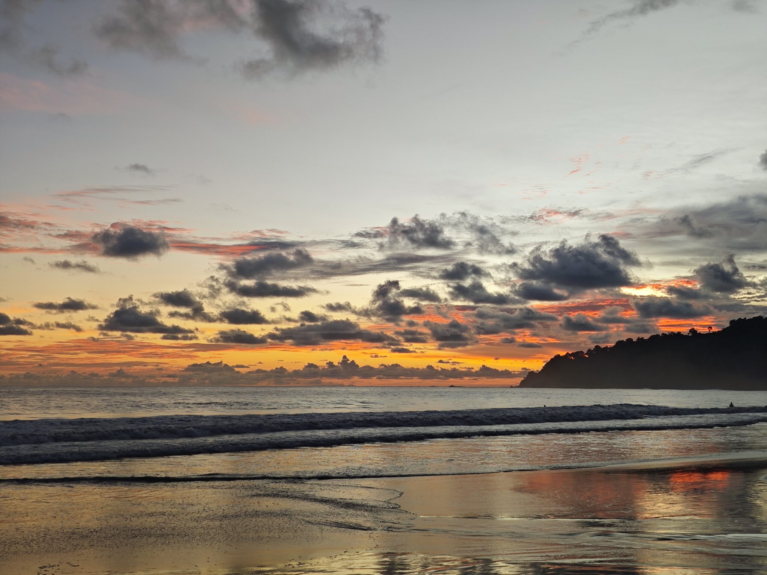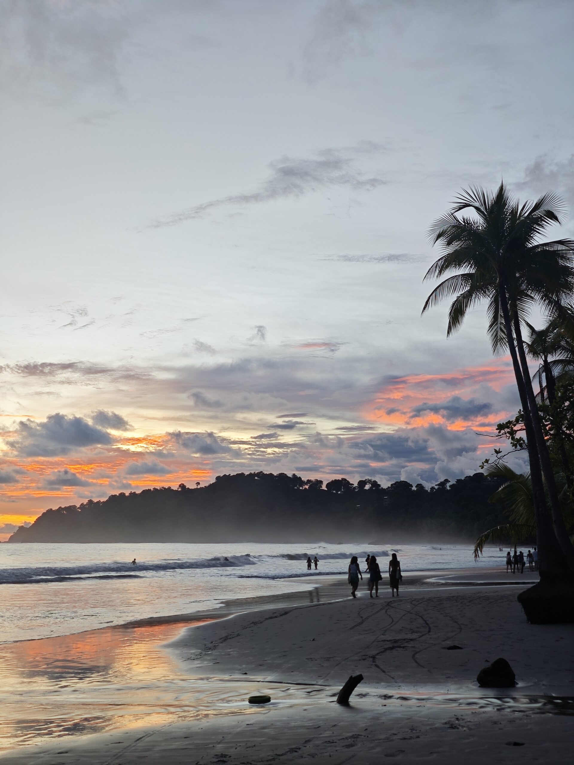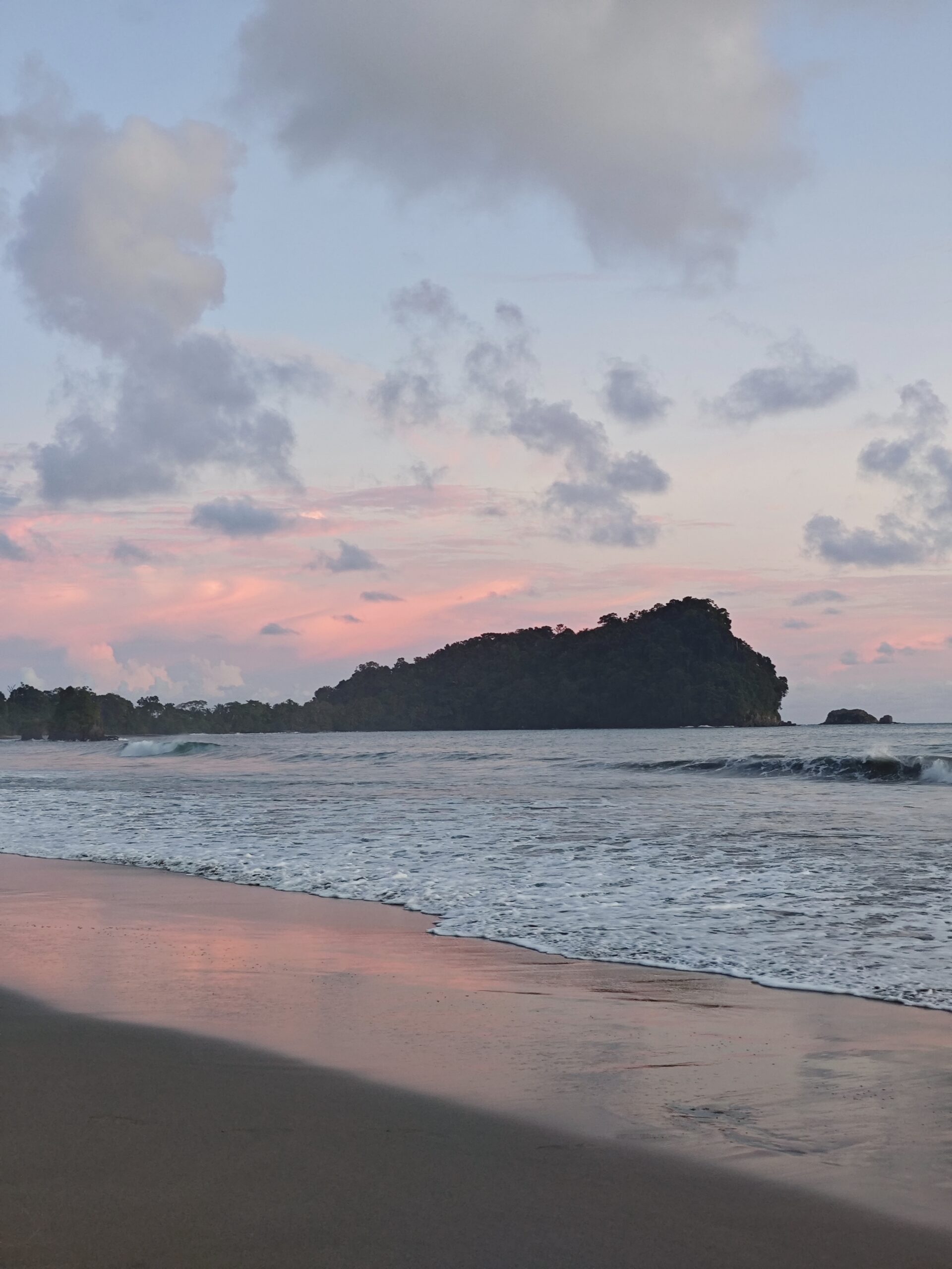 Am nächsten Tag ging es aber direkt weiter an die Pazifikküste. Wir sind knapp 4 Stunden mit dem Bus nach Manuel Antonio gefahren. Dort haben wir uns eine kleine Villa mit Privatpool gemietet, war sehr nett 😃Am ersten Tag sind wir zum Strand gefahren und haben uns erst den Hauptstrand, Playa Espadilla, angeschaut. Wir lagen einige Zeit am Strand, baden war aber aufgrund hoher Wellen kaum möglich. Danach sind wir noch zum Playa Biesanz gefahren, denn dort war es nicht so wellig und man konnte besser baden. Um den Sonnenuntergang anzuschauen, ging es nochmal zurück zum Hauptstrand.