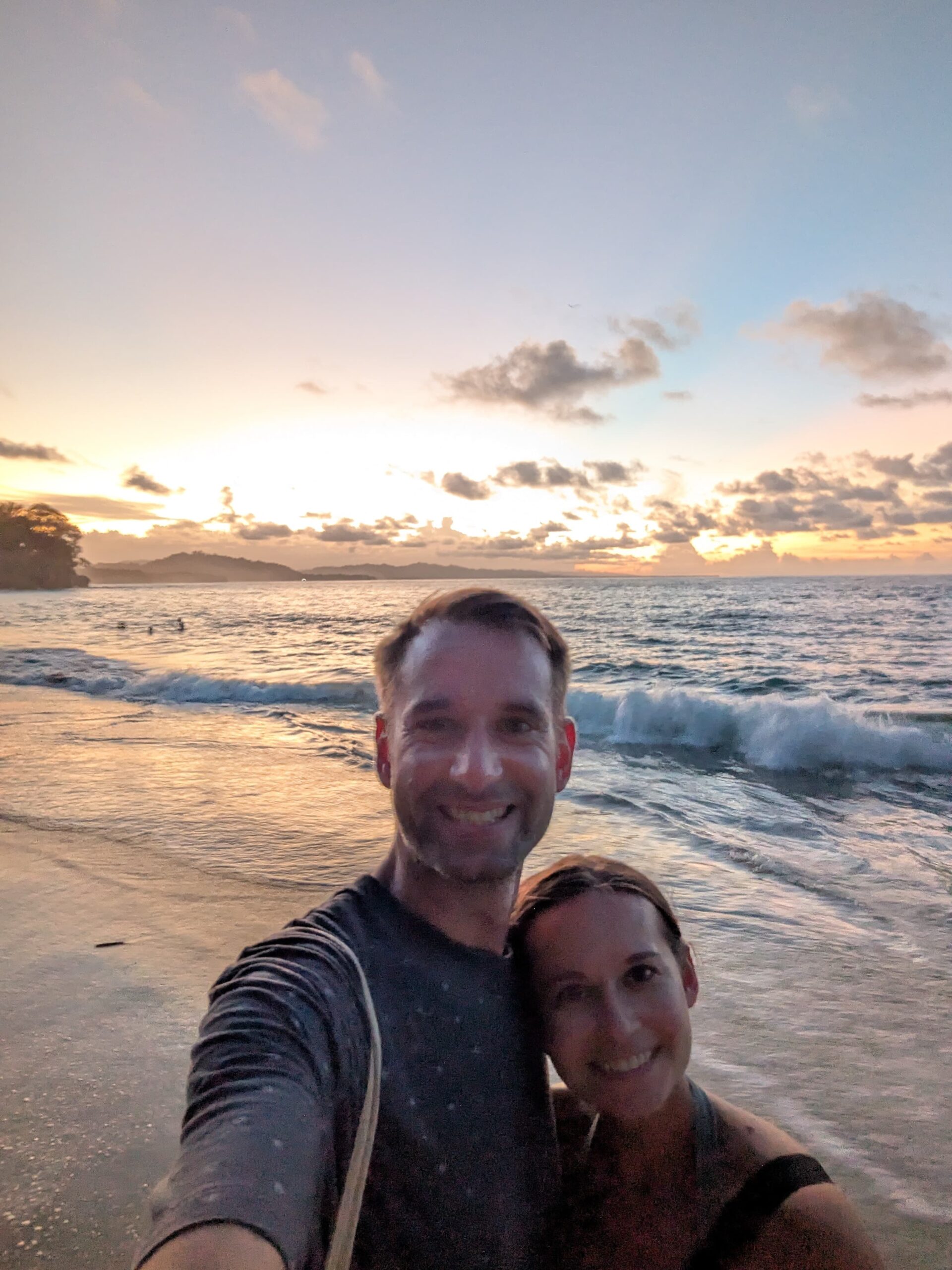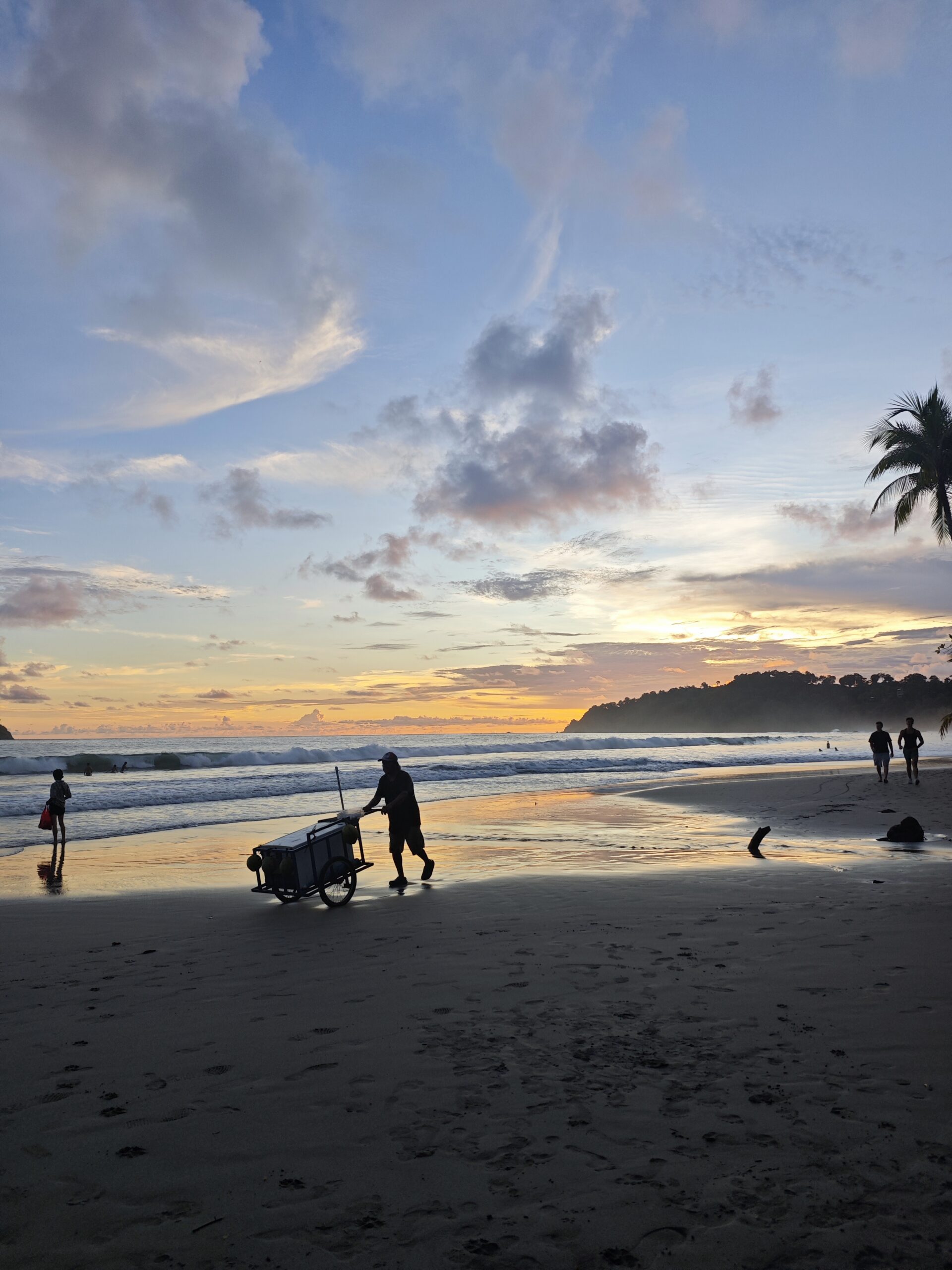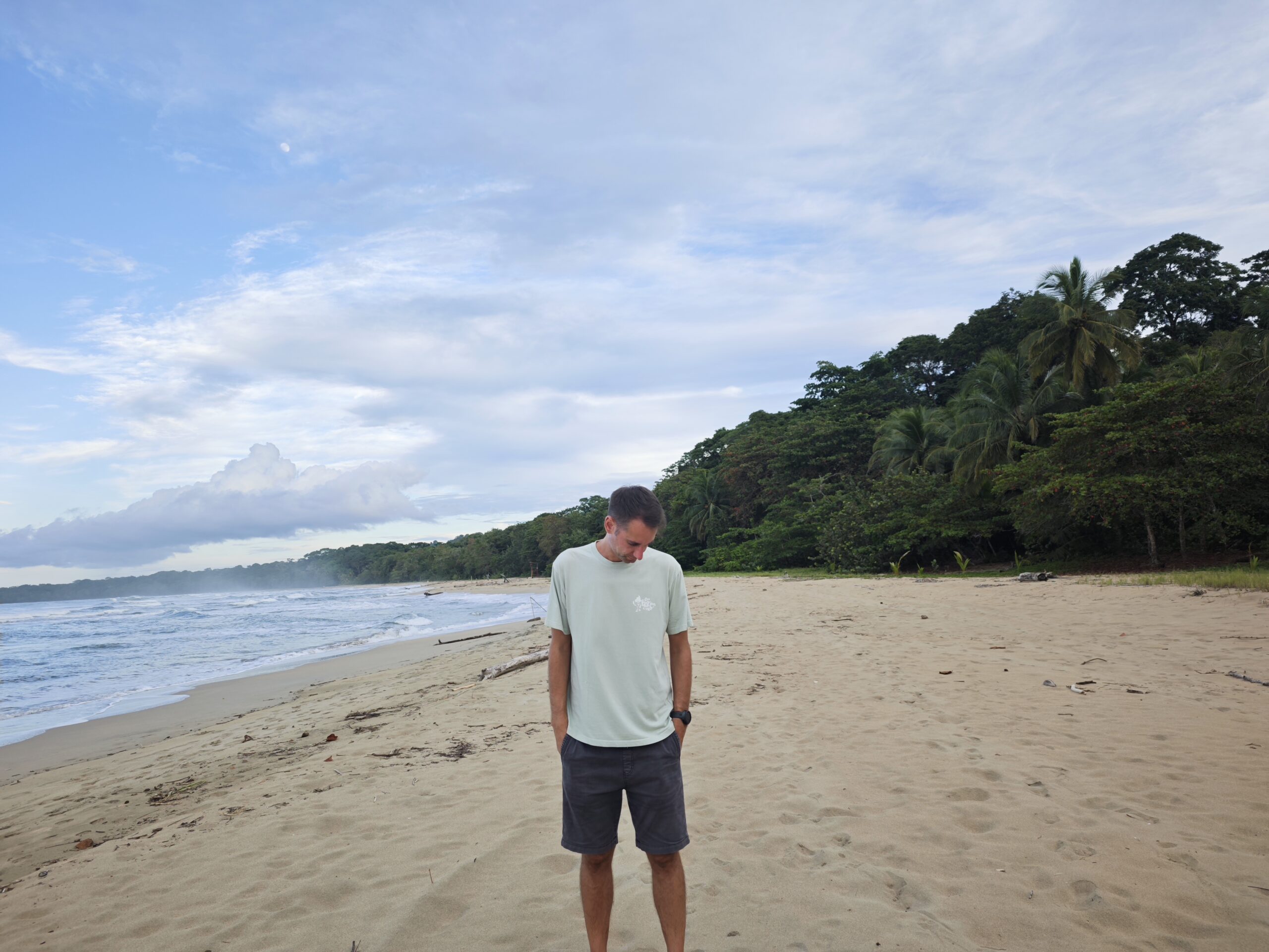 Am nächsten Tag ging es aber direkt weiter an die Pazifikküste. Wir sind knapp 4 Stunden mit dem Bus nach Manuel Antonio gefahren. Dort haben wir uns eine kleine Villa mit Privatpool gemietet, war sehr nett 😃Am ersten Tag sind wir zum Strand gefahren und haben uns erst den Hauptstrand, Playa Espadilla, angeschaut. Wir lagen einige Zeit am Strand, baden war aber aufgrund hoher Wellen kaum möglich. Danach sind wir noch zum Playa Biesanz gefahren, denn dort war es nicht so wellig und man konnte besser baden. Um den Sonnenuntergang anzuschauen, ging es nochmal zurück zum Hauptstrand.