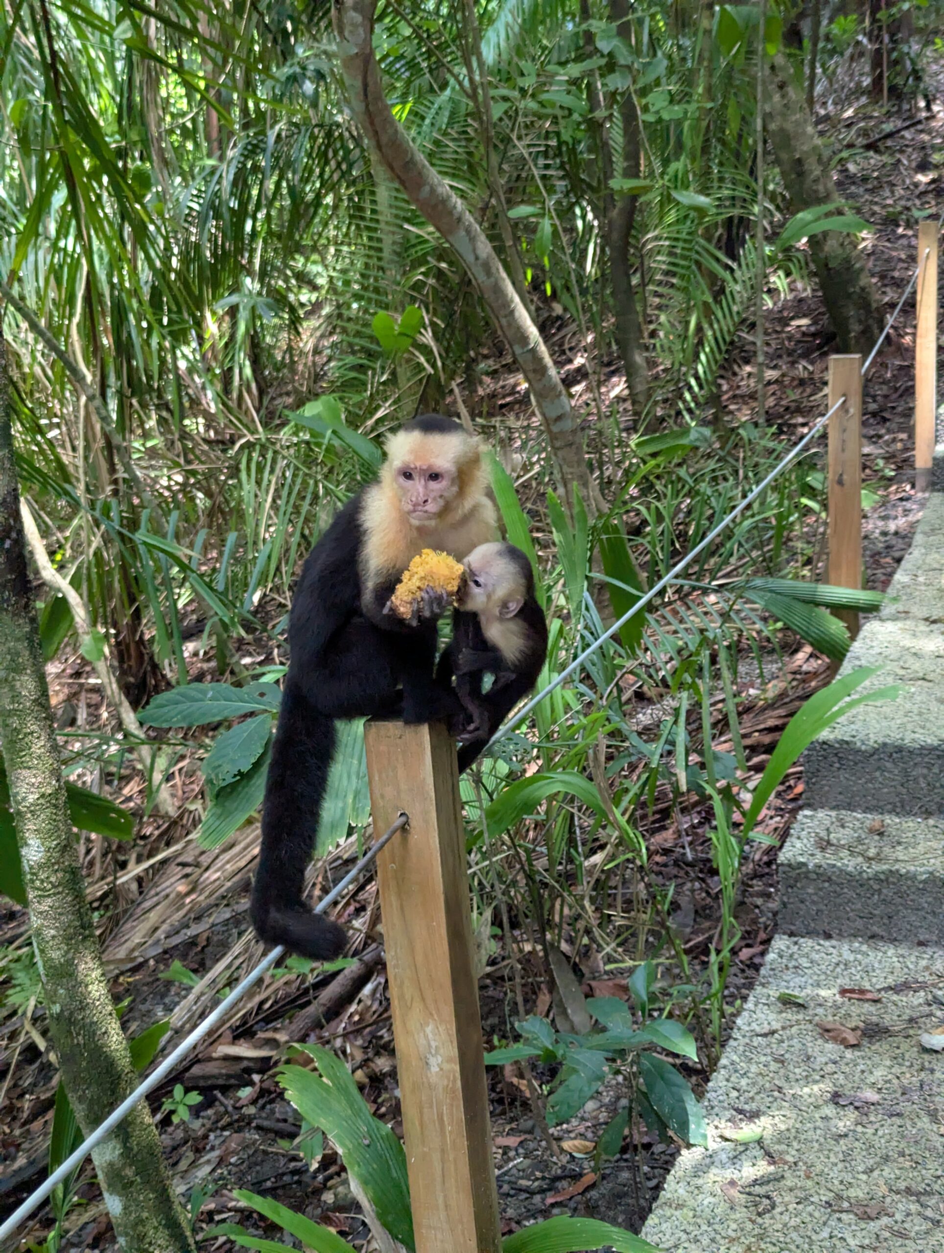 An unserem dritten Tag ging es in den Manuel Antonio Nationalpark. Dies ist die am dritthäufigsten besuchte Attraktion in Lateinamerika und dementsprechend voll war’s auch schon um 8 Uhr morgens. Im Park gelten strenge Regeln, man darf kein Essen und kein Plastik mitnehmen, die Taschen werden durchsucht. Im Park hatten wir zunächst eine 2-stündige Tour, um Tiere zu entdecken. Wir haben einige Krabben, Frösche, ein Faultier und seeehr viele Affen gesehen 😃 Eine Art der Affen ist auch recht aggressiv und dafür bekannt, Essen von den Menschen zu klauen: Deswegen ist es verboten, Essen mitzunehmen und es gibt nur ein Café im Park, wo man etwas essen kann.