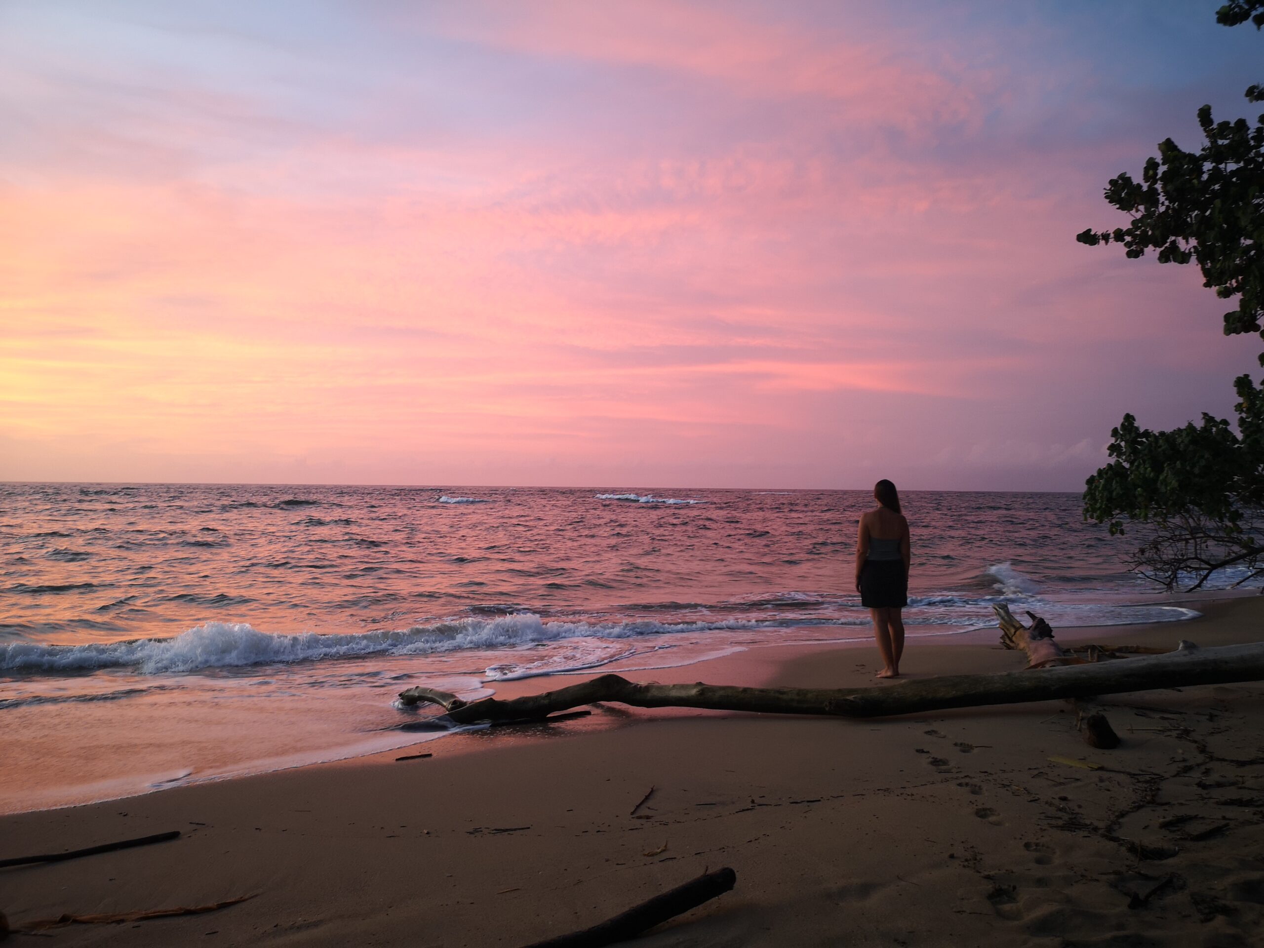 Wir waren zur Regenzeit in Costa Rica, deswegen war das Wetter wechselhaft und es hat immer mal wieder geregnet. Aber es war absolut in Ordnung. Und an den letzten beiden Abenden hatten wir sogar das Glück, den Sonnenuntergang zu sehen! 🙂In Punta Uva gibt es außer einem kleinen Minimarkt und einer Handvoll Restaurants wirklich gar nichts. Diese Abgeschiedenheit haben wir sehr geliebt. An einem Nachmittag sind wir mit einem Uber aber ins nächste größere Dorf gefahren, nach Puerto Viejo de Talamacan. Wir brauchten Postkarten und wollten ein bisschen bummeln. War definitiv ganz nett, aber Punta Uva hat uns besser gefallen.