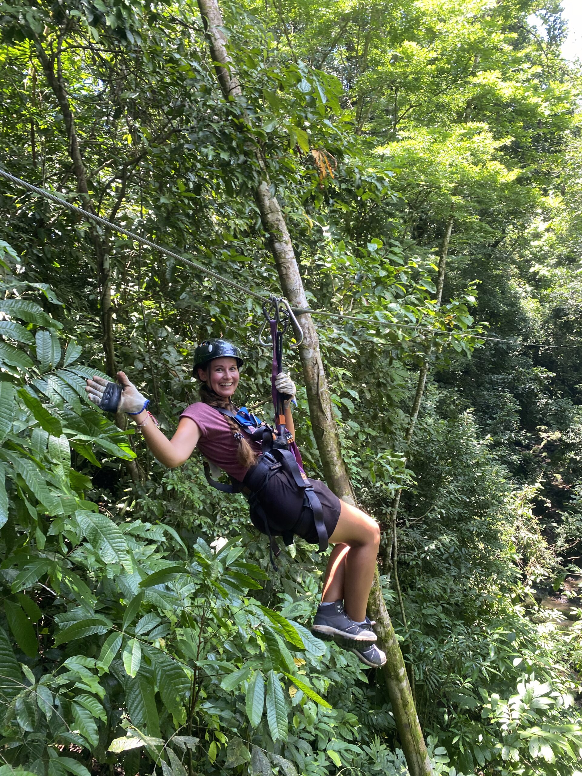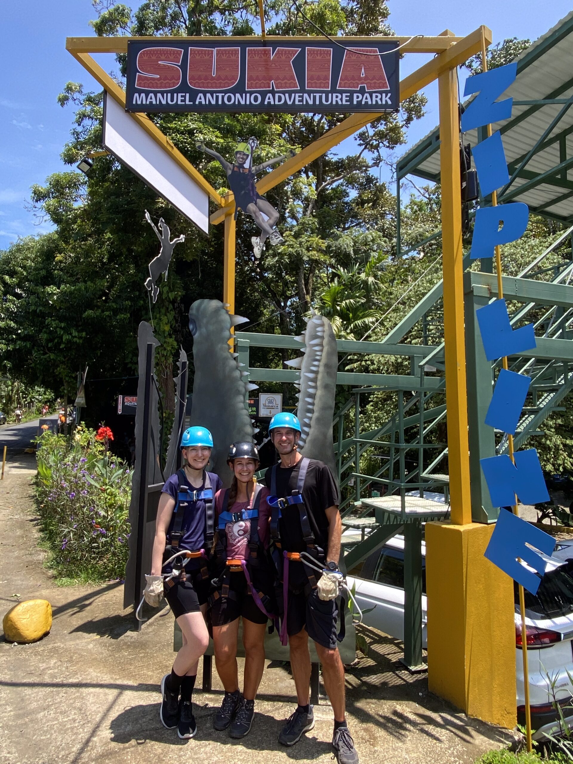 An unserem zweiten Tag stand etwas Aufregendes an: Ziplining! Lena und ich haben das bereits in Ecuador und Peru gemacht, deswegen war klar, wir machen das in Costa Rica definitiv nochmal. Dami hat das noch nie gemacht, aber wollte es dann auch ausprobieren. In der Beschreibung stand, dass man sich auch an einem Wasserfall abseilen kann, es sei aber optional. Naja, dem war nicht so und irgendwann sind wir an der Stelle angekommen und wir alle mussten uns neben einem 100 Fuß hohen Wasserfall abseilen – das war ganz schön aufregend 😃 Aber wieder etwas neues, was wir noch nie gemacht haben 🙂Nach der Zipline Action konnten wir noch in derselben Anlage eine Krokodil Auffangstation und einen Schmetterlingsgarten besuchen.